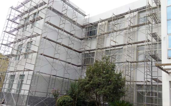 目前,辦公樓外墻裝修工作已經(jīng)過(guò)半,已完成的部分煥然一新,室內裝修工作也在有條不紊地進(jìn)行中。