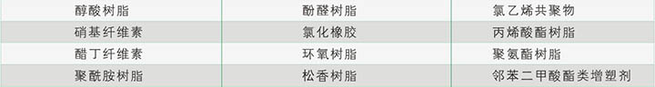 INT 8603酮醛樹(shù)脂與絕大多數用于涂料/油墨的樹(shù)脂有良好的相容性。包括下列樹(shù)脂: